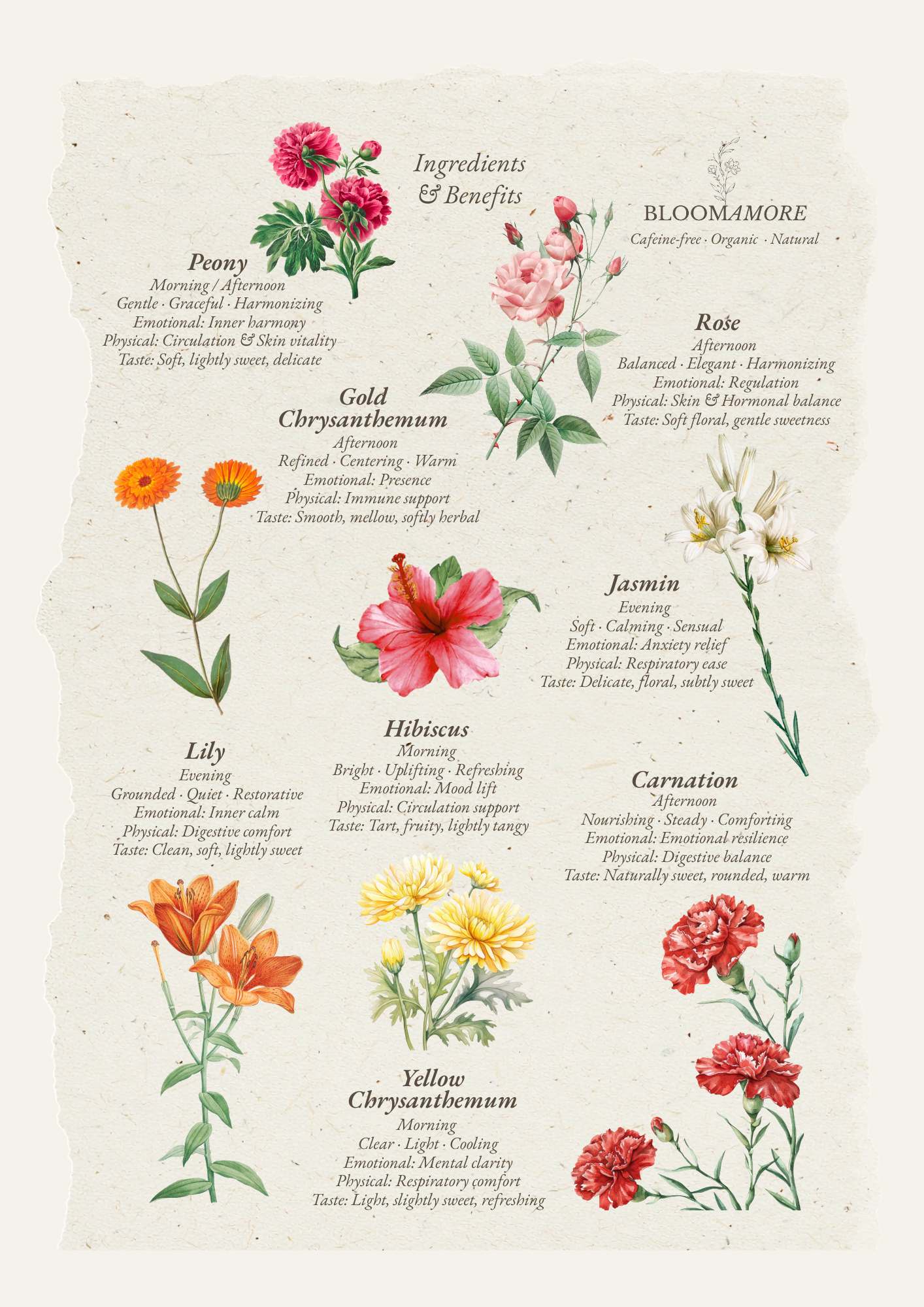 Lightly sweet and gently aromatic, peony brings softness, balance, and a rounded elegance to the infusion.