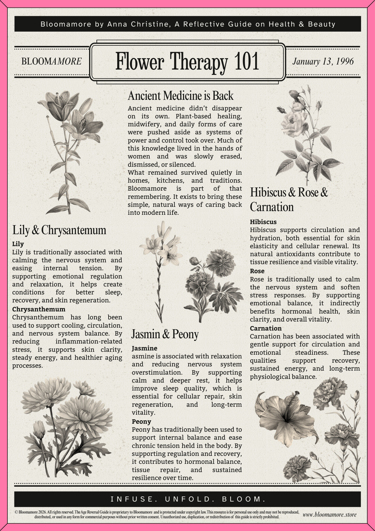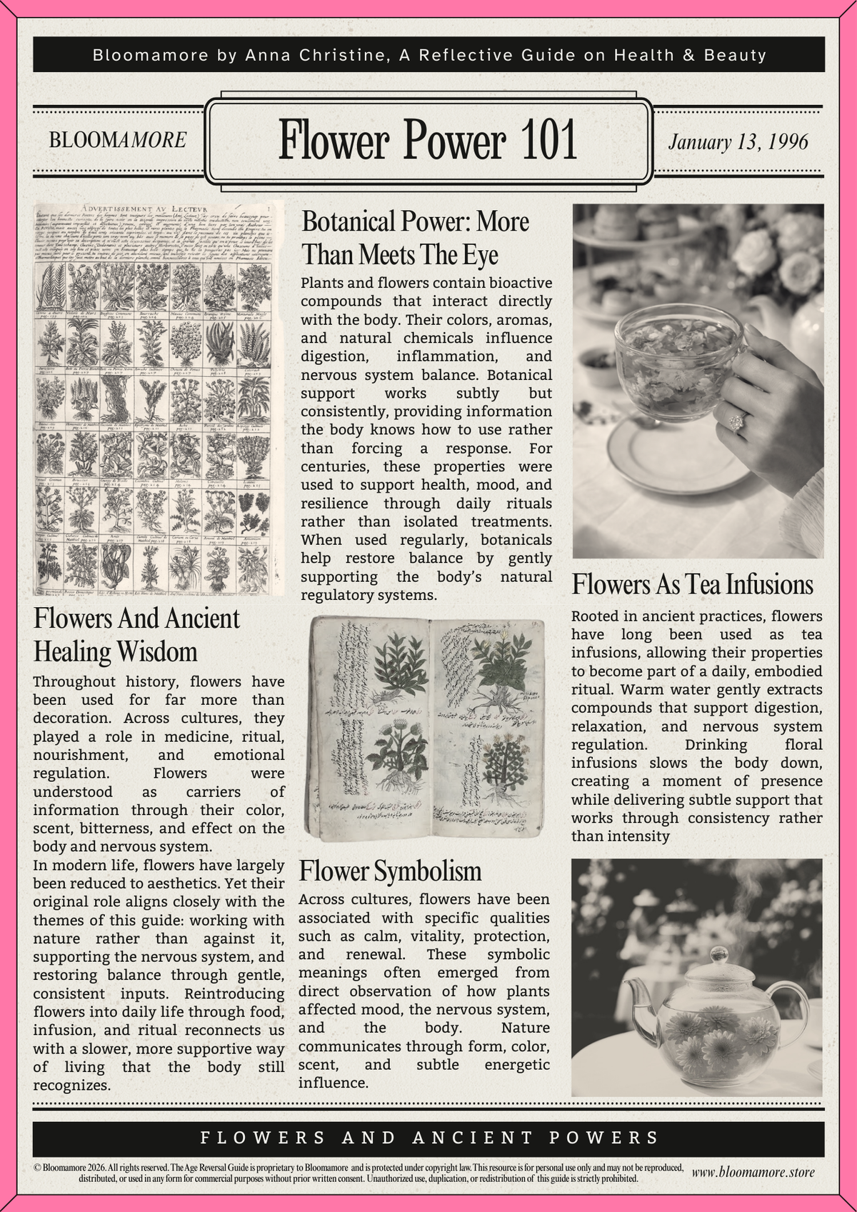 A private Teatox with 1:1 expert guidance personally led by Anna Christine, designed to support age reversal, balanced mood, healthy habits, weight balance, and clean beauty from within through blooming flower tea, mindful practices and tailored guidance giving you sustainable tools to take with you long after the Teatox ends.